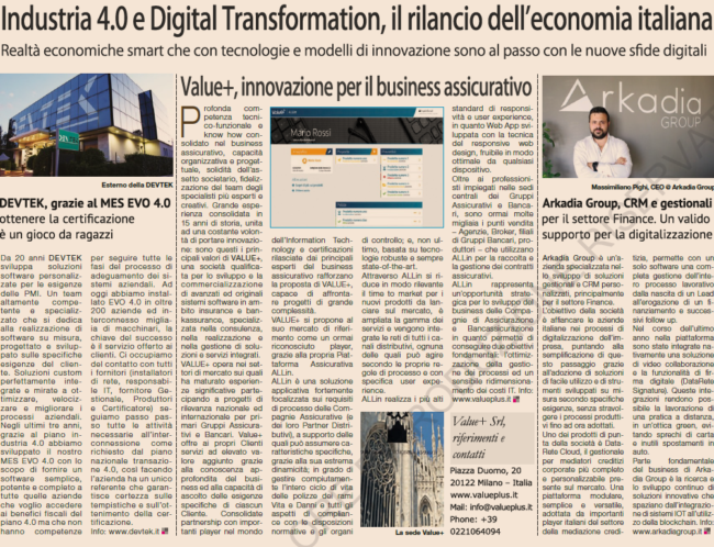 [Il Sole 24 Ore] Arkadia Group, CRM e gestionali per il settore Finance. Un valido supporto per la digitalizzazione